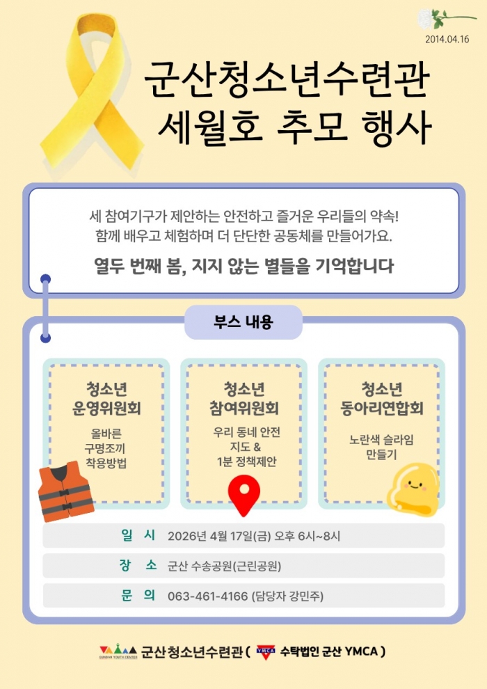 ±ÛÁ¦¸ñ: 2026 ±º»êû¼Ò³â¼ö·Ã°ü û¼Ò³â Âü¿©±â±¸ ¼¼¿ùÈ£ Ã߸ð Çà»ç