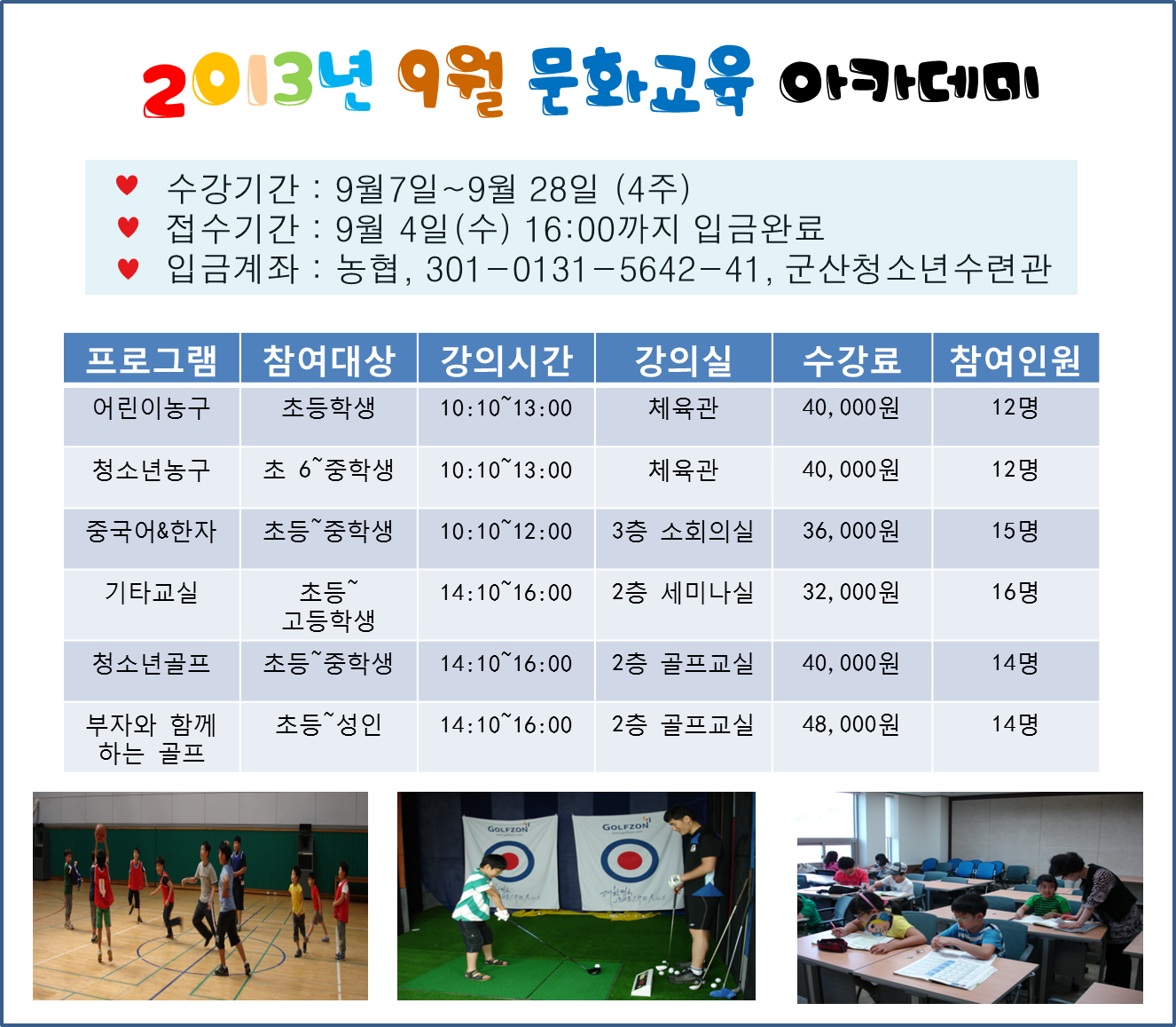 ±ÛÁ¦¸ñ: 2013³â 9¿ù ¹®È­±³À° ¾ÆÄ«µ¥¹Ì Âü°¡ÀÚ¸¦ ¸ðÁýÇÕ´Ï´Ù.