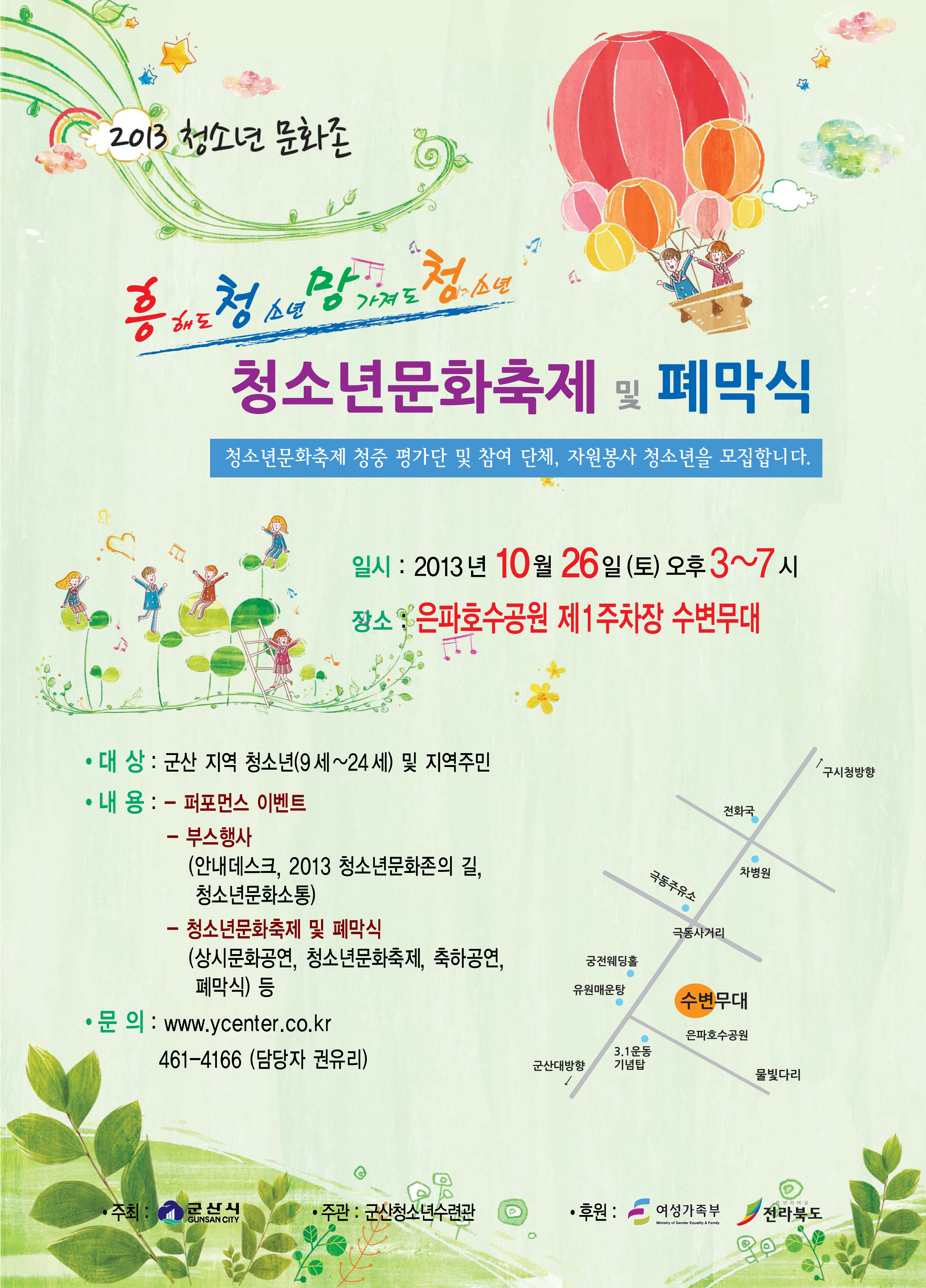 ¡Û ³»¿ë : ÆÛÆ÷¸Õ½º À̺¥Æ®, ºÎ½ºÇà»ç(¾È³»µ¥½ºÅ©, 2013 û¼Ò³â¹®ÈÁ¸ÀÇ ±æ, û¼Ò³â¹®È¼ÒÅë), û¼Ò³â¹®ÈÃàÁ¦ ¹× Æó¸·½Ä(»ó½Ã¹®È°ø¿¬, û¼Ò³â¹®ÈÃàÁ¦, ÃàÇϰø¿¬, Æó¸·½Ä) µî