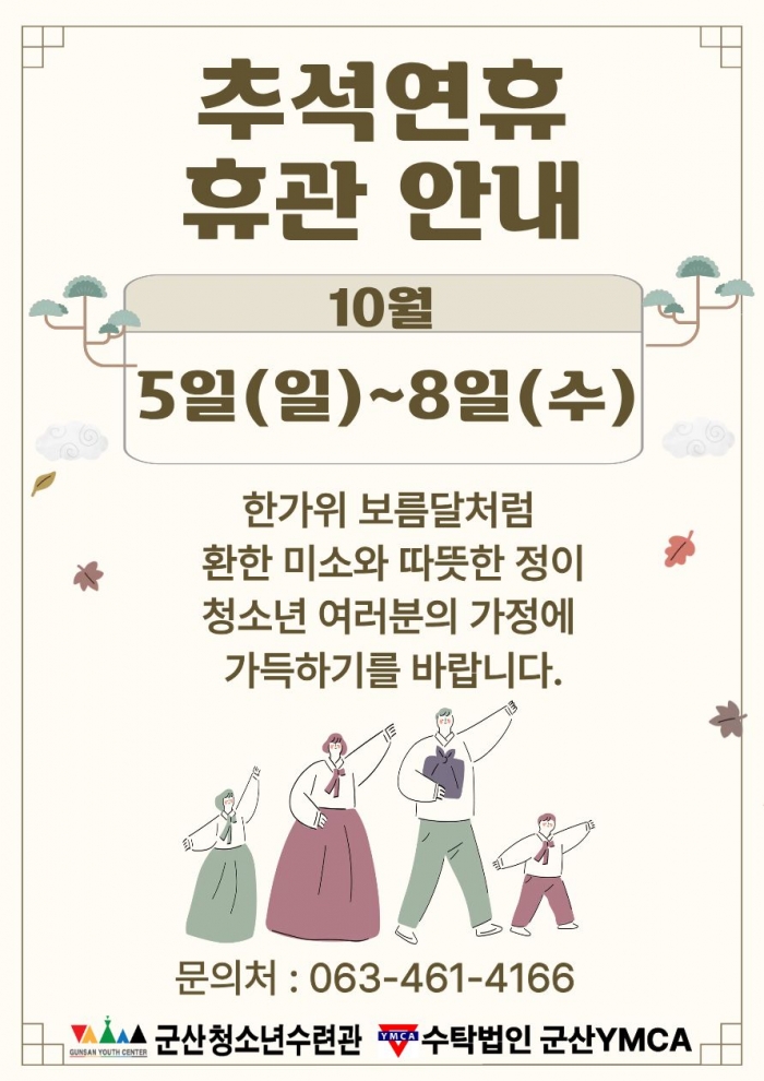 ÈÞ°ü ±â°£ : 2025. 10. 5(ÀÏ) ~ 8(¼ö)